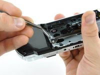 Insert a spudger between the front case and PSP, and slide the spudger along the perimeter of the front case to remove it.