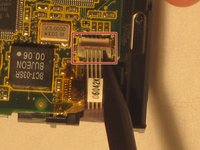 Using tweezers unhook the blue and red screen cables where they connect to the motherboard.