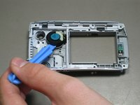 Using an ipod case opener or similar tool, simply pry off the speaker.