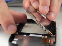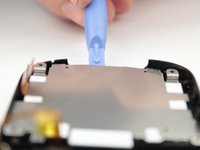 Use a plastic opening tool to remove the small panel on the top of the phone by prying underneath the black plastic around the camera.