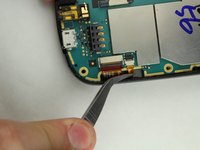 There is a black cable under the motherboard that must be disconnected while the motherboard is still in the phone