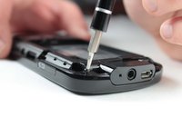 Use the Philips Head 00 screwdriver to unscrew the 3.5mm silver screw on the right hand side of the phone.