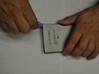 Now that both ribbons and the wire are disconeccted, you can apply a downward pressure to the battery. You will have to carefully rotate the frame so that the battery can go through.