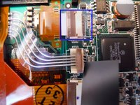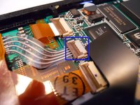 • To do this, using tweezers, flip up the cable clamp that is connecting the ribbon to the screen.