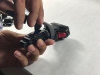 Push the lock switch upward and remove the 6 mm screw hidden beneath.