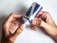 • Pull the outer casing with one hand while holding the inner battery casing with the other hand.