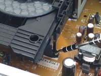 With the drive assembly separate from the player, hold as shown and pull the bracket edges away from the disk drive.