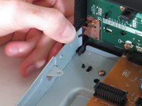 Lift up the five tabs securing the front panel to the chassis. There are three on the bottom, and two on the inside edges of the panel. Panel should then lift off the player.