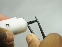 Use a pair of tweezers to remove the plastic cover of the motor shaft by pulling it away from the motor.