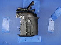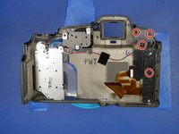 From here on in, it is strongly recommended to use tape to keep track of the screws as you disassemble the camera. Screws are not always uniform in length or thread type, and some are aluminum, so tape works best here.