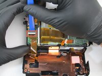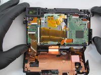 Pull the ribbon cable from the connector. The rear cover is now completely detached from the camera.