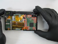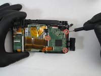 Remove the three 3.5mm silver Phillips #0 screws mounting the main PCB to the camera frame.