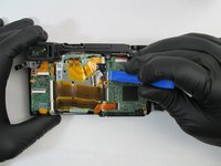Disconnect the ribbon cable from the camera by pulling up on the black locking tab with an iFixit opening tool.