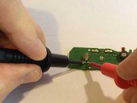 Remove a single screw from the controls board. (It is not necessary to release the small ribbon from its socket on the other side.)