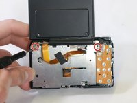 Remove the four 2mm Phillips #000 screws on the sides of the exposed internal metal plate within the camera.