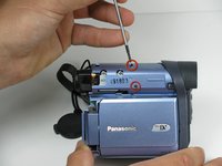 This guide shows how to remove the side panel containing the LCD viewing screen and speakers to gain access to other parts of the camera.