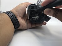 Use your Phillips #0 screwdriver remove the two 5mm screws on the battery base of the camera.