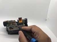 Disconnect the ribbon cable with your plastic opening tool, so that the left side of the camera can be removed.
