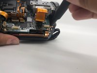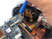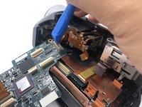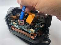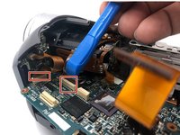 Disconnect another ribbon cable that runs from the motherboard to the bottom of the viewfinder with a plastic opening tool.