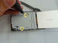 Under the display is another shielding plate. It is attached with two 6.4 mm #000 Phillips screws. Remove those to remove the shield