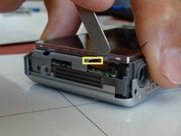 Use a spudger or plastic opener to remove the rear cover. Start next to the USB cover and slide the tool along the camera. Lift the rear housing cover off.
