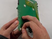 Starting from the side of the device, lift the motherboard off of the plastic standoffs.