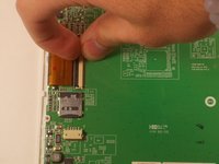 Use the tip of your plastic spudger or your fingernail to flip up the long retaining flap. The longer, gold ribbon cable can now be pulled out safely.
