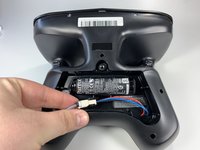 Disconnect the battery from the remote by pressing the white tab and pulling the connectors apart.