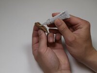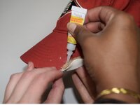 Apply pressure to each side of the patch as it sandwiches the visor. Hold firmly until the glue sets.