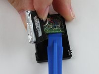 Flip the internal components over, and use a plastic opening tool to pry the battery out of the black plastic frame.