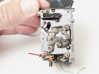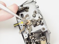 Removing this lever and cleaning out the old bushing is usually enough to get the camera functioning again.