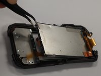 We want to remove the larger silver panel (right). The best way to do this is to slightly bend the cover backwards and use the tweezers to grab a corner and slowly lift the screen up and out.