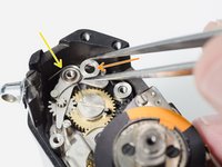 Remove one 2.5 mm flat head screw. It is reverse or left-hand threaded.