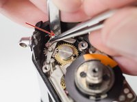 Turn the wind driver counter-clockwise until the wind spring drops inside the corner of the camera chassis.