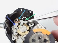 Push the ratchet teeth in to engage them with the main wind gear. The bias springs should look like this when properly installed.
