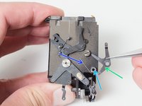 Unscrew one blue wire. This is the ground wire that connects the meter circuit to the body of the camera.