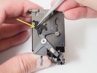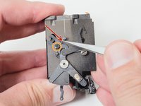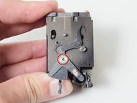At the end of an exposure, the large black gear pushes the release lever, returning the mirror to the viewing position.