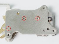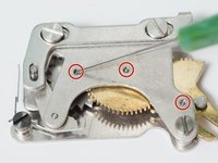 Remove one 2.5 mm flat head screw. It is reverse or left-hand threaded.