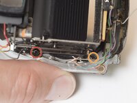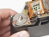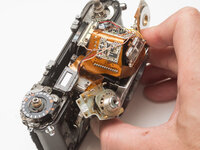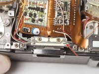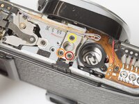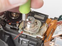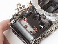 Remove one M1.7 x 2.5 mm screw. It is only accessible when the mode dial is in the 'L' position.