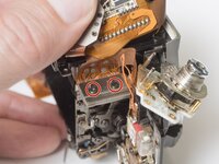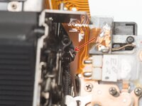 Lift the ISO resistor assembly off the rewind post. It is still attached by a flex PCB.