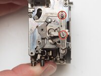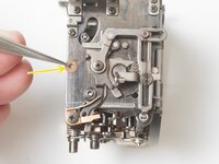 Remove one M1.7 x 2.5 mm screw. It is only accessible when the mode dial is in the 'L' position.