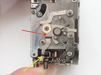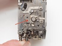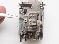Lift the ISO resistor assembly off the rewind post. It is still attached by a flex PCB.