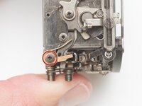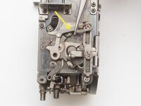 Note the rubber bumper on the pivot post. This should be removed and cleaned before reassembly.