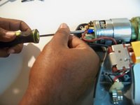 Unscrew the red wire from the motor (Phillips head screw 1/4 inch).