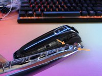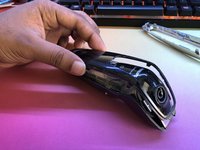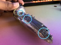 The rear case is removed by gently squeezing the metal tabs away from the case.
