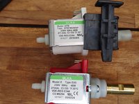 The factory-installed pump was an Ulka EP5FMGW. Replace it with an Ulka EX5, which has a metal fitting.