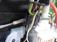 To be on the safe side, remove the three black cables of the flowmeter from their holder so that the pump has a free path.