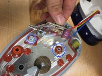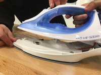 Remove the back plastic piece of the clothes iron through carefully prying it off with a chisel.