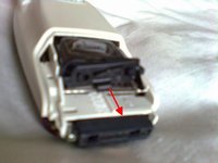 The battery itself, however, has a weird mechanism that must be first pulled up by the side (as shown in the first picture) and then, when the switch is in the possition shown in the second picture, pulled out by the plastic side.