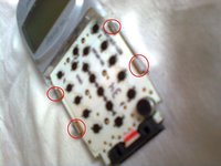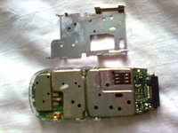 The back part of the phone is attatched to the board and lcd by 8 clips on each side (pic 1 ilustrates the biggest one) and two clips on the top (pic 3)